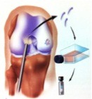 4.-transplante de condrócitos – retirada de células produtoras de cartilagem (condrócitos) do próprio paciente e cultivo em laboratório. Após proliferação dessas células, por cirurgia são re-colocadas no paciente, no local da lesão. Esta técnica é utilizada nas lesões maiores da cartilagem.