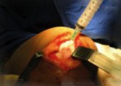Na cirurgia de implante de condrócitos, num primeiro procedimento retiramos um pequeno fragmento de cartilagem (tamanho de uma bala ‘tic-tac’) para enviar ao laboratório de cultura celular. Num segundo momento, realizamos a cirurgia de implante destas células de cartilagem cultivadas.